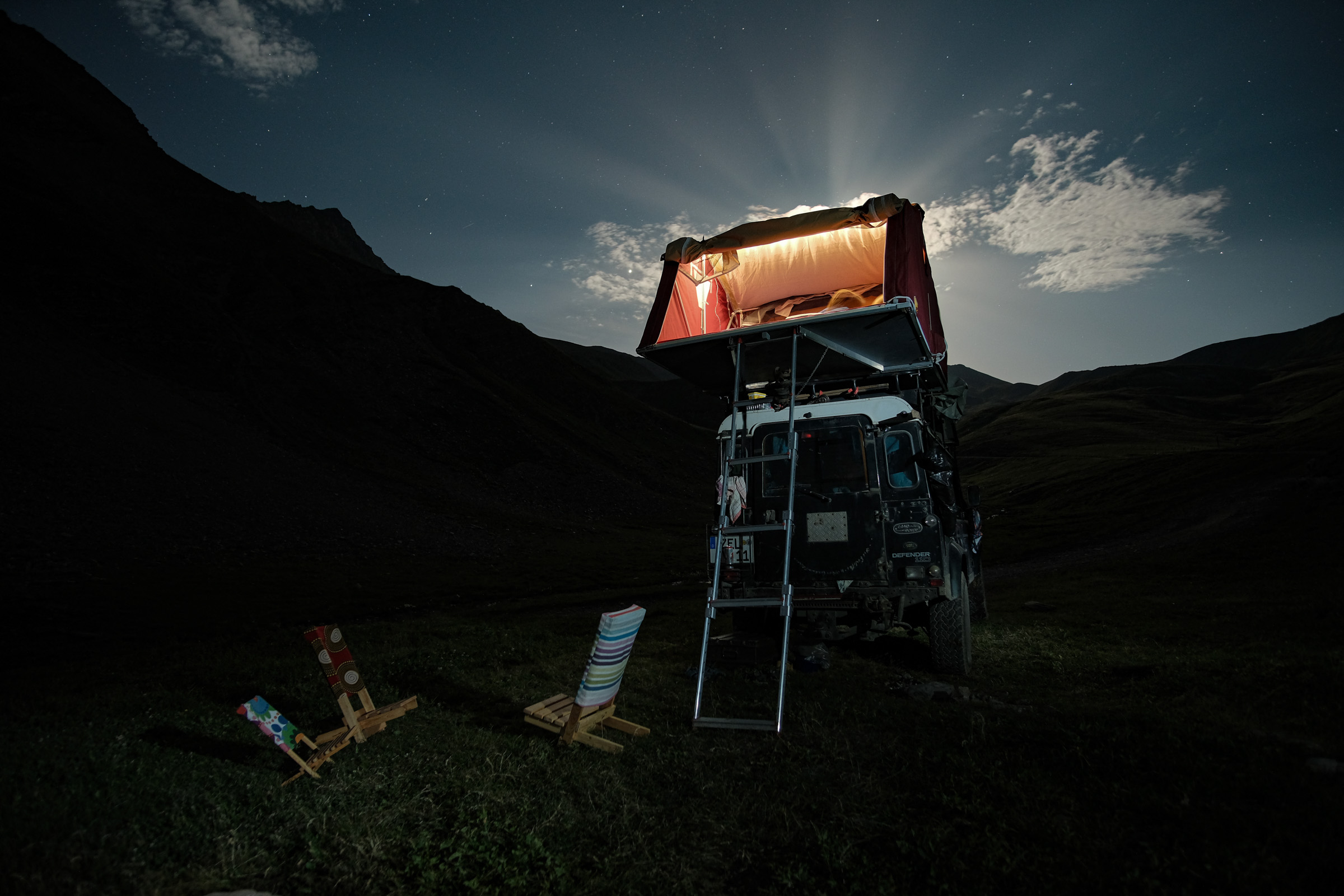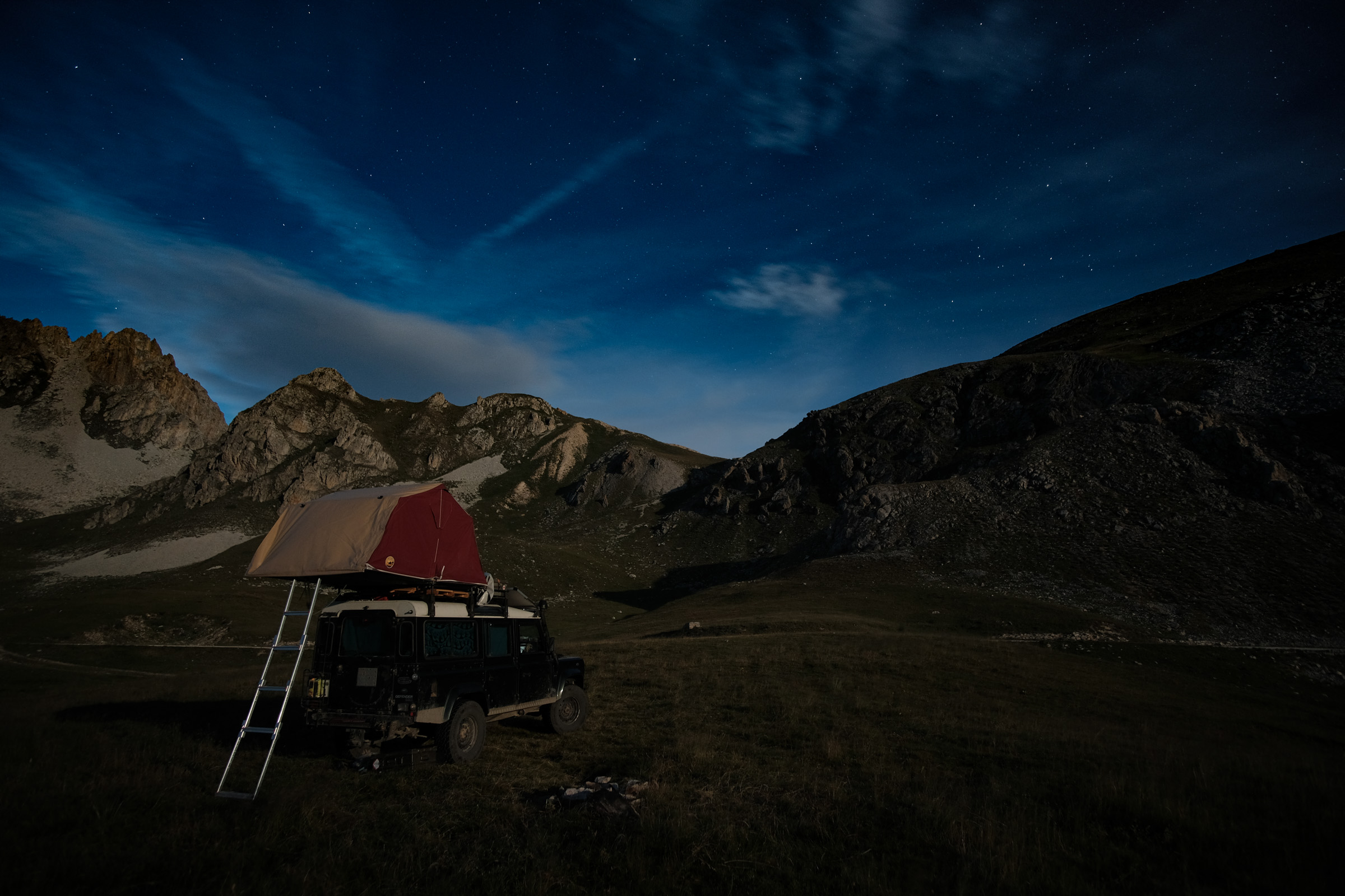 Schnell war auch ein Ziel gefunden, was diesen Ansprüchen gerecht werden kann: Die Westalpen. Entlang der italienisch-französischen Gebirgsgrenze schlängeln sich alte Schmuggler- und Militärstraßen, die Offroader aller Couleur begeistern – vom Radfahrer über Camel-Trophy-Enthusiasten bis hin zum Luxus-Camper. Auch unsere Familie mit Landrover „Gertrud“ machte sich auf die Suche nach dem einsamen Alpenglühen.